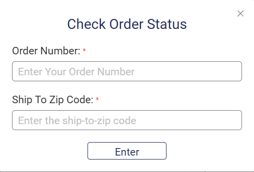 Enter your Order Number and Ship to Zip Code in the boxes on the pop-up then select the button labeled 'Enter'.