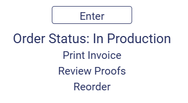 You should now see an order status as well as options to print your invoice, review your proofs, and reorder. :)